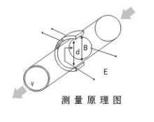 測(cè)量流量時(shí),導(dǎo)電性液體以流速V流過垂直于流動(dòng)方向的磁場(chǎng),導(dǎo)電性液體的流動(dòng)感應(yīng)出一個(gè)與平均流速成正比的電壓,其感應(yīng)電壓信號(hào)通過與液體直接接觸的電極檢出。對(duì)于同一流量計(jì)S、B、d為常量,所以流量與感應(yīng)電動(dòng)勢(shì)E(或流速V)的大小成正比。