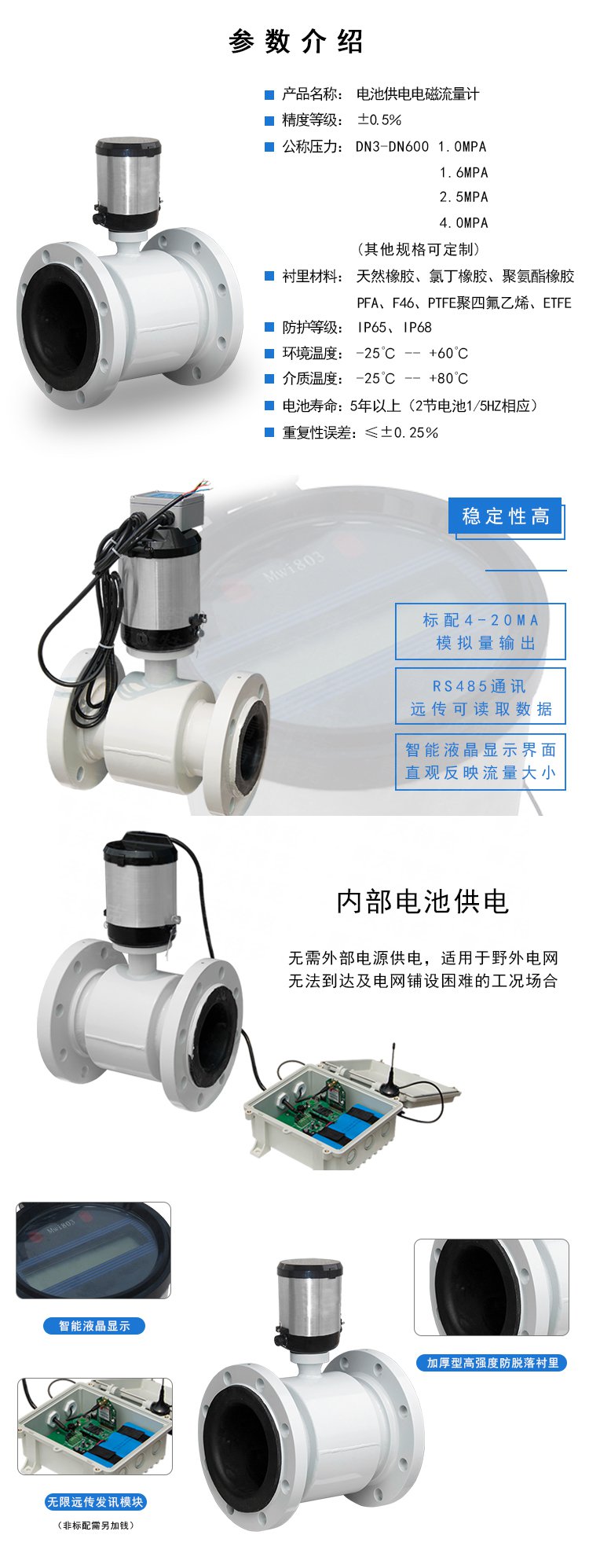 電池供電電磁流量計是為供水企業實際要求而專門設計的計量儀表。